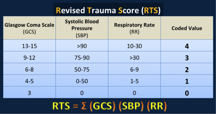 - Importance of Initial Assessment: The RTS is based on the initial assessment. Early identification of critical trauma patients can improve outcomes by facilitating faster access to necessary interventions.