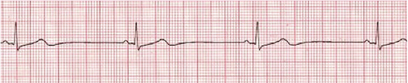 - Rate: normal to bradycardia, depending on the duration and frequency of the pause.